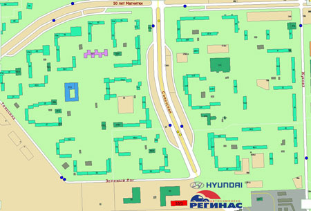 Дилерский центр Hyundai расположен в южной части города Магнитогорска (149 микрорайон) на улице Зеленый Лог, 53/1.